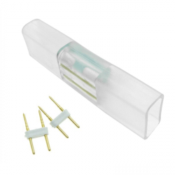 Connecteur transparent qui permet de relier plusieurs sections de bandes de néon à DEL flexibles de 220 V.