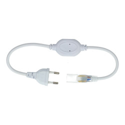 Kit de connexion de bande LED 220V. Supporte jusqu'à 50m de bande de leds. Il permet de connecter directement la bande de leds au réseau électrique, sans avoir besoin d'un transformateur ou de tout autre dispositif supplémentaire.