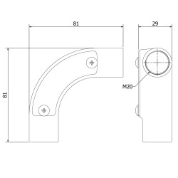 Courbe métallique à 90º avec filetage M20.