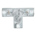Connexion métallique en forme de T avec trois filetages M20.