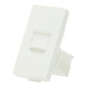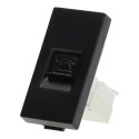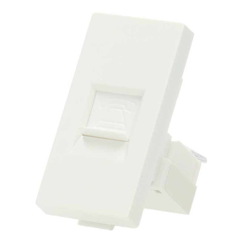 Socle encastré à demi-élément avec prise téléphonique RJ11, disponible en blanc ou en noir.