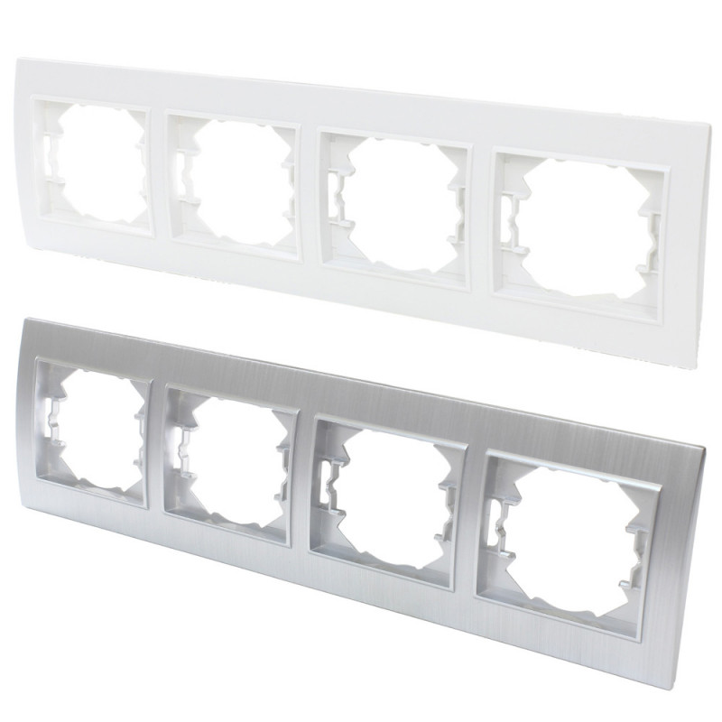 Cadre en polycarbonate pour 4 mécanismes, disponible en blanc ou en argent.