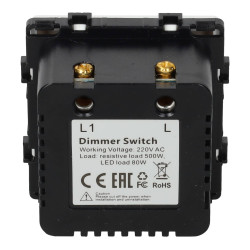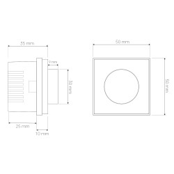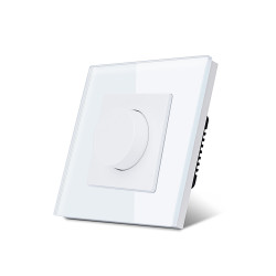 Dispositif de réglage de la puissance d'une installation LED de 220V avec une charge maximale de 80W. En tournant la roue, l'intensité lumineuse des LED peut être réglée de sa valeur maximale jusqu'à l'extinction. Idéal pour la gradation de bandes de LED à 220V, d'ampoules LED gradables, de downlights (avec driver gradable), etc.