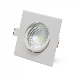 Downlight Led carré de 5W réglable, avec cadre en blanc.