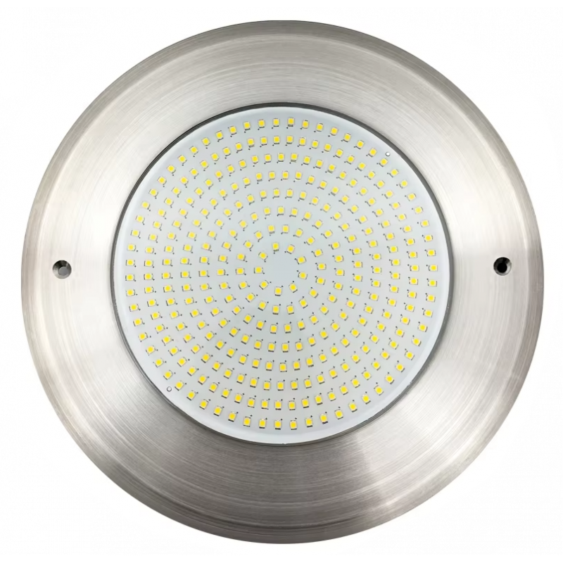 Lampe de piscine 18W à lumière chaude, design extra-plat pour installation encastrée. Fabriqué en acier inoxydable 316.