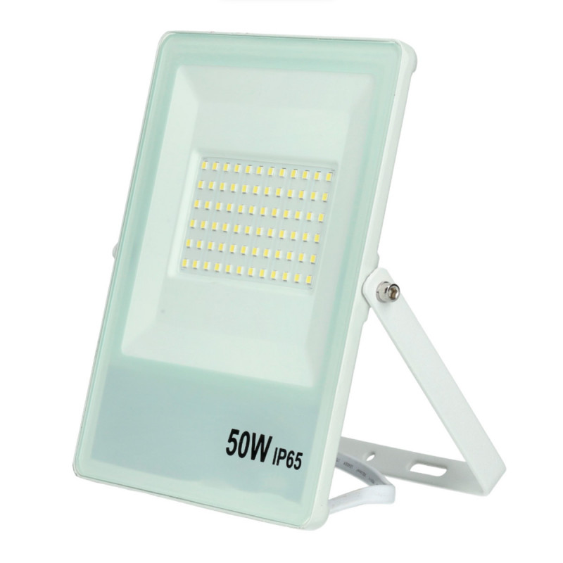 Spot LED plat de 50W pour l'intérieur et l'extérieur (IP65), avec une grande économie d'énergie et une grande efficacité lumineuse. Disponible en lumière blanche froide ou neutre, avec 4600 lumens.