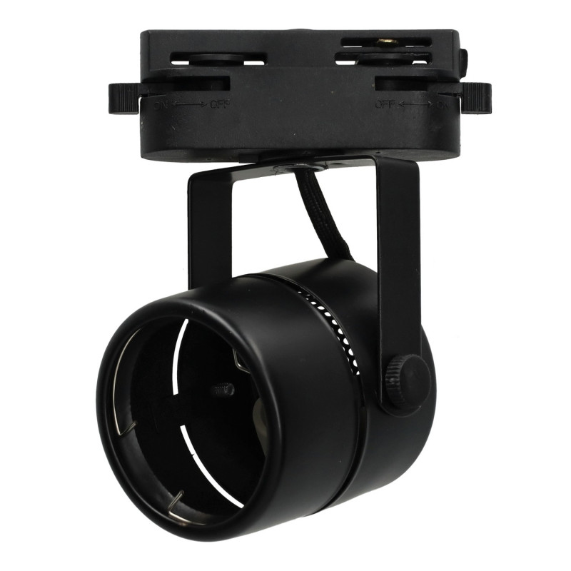 Projecteur de piste idéal pour les lampes/ampoules GU10. Pour les rails monophasés. En aluminium noir.