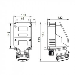 Base industriale a spina di superficie a 2 poli + terra, con protezione contro atmosfere esplosive.