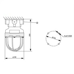 La parte inferiore è costituita da una scatola di giunzione rotonda con quattro guaine filettate metriche M25 x 1,5 (chiuse con un tappo esagonale). Per l'utilizzo dei binari è necessario acquistare i pressacavi ATEX M25.
