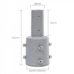 Questo adattatore è combinato con il supporto articolato per lampione permettendo così di posizionare in quest'ultimo lampione di collo piccolo (40 mm).