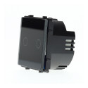 Interruttore a doppio tocco commutato, disponibile in bianco o nero.