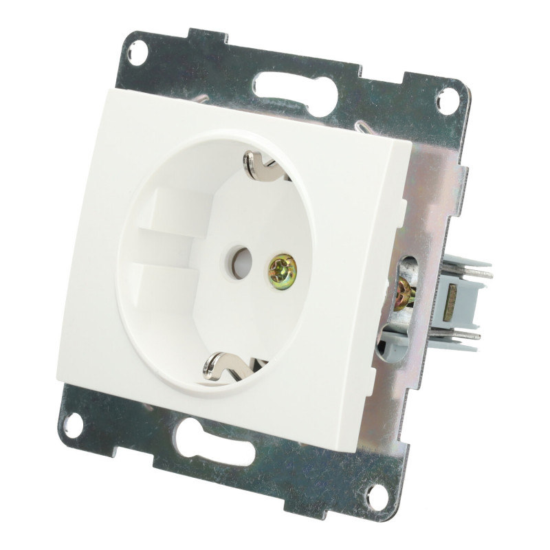 Base spina da incasso tipo F (schuko), disponibile in bianco, nero o argento.