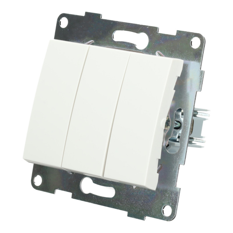 Triplo interruttore di un elemento da incasso, disponibile in bianco o argento.
