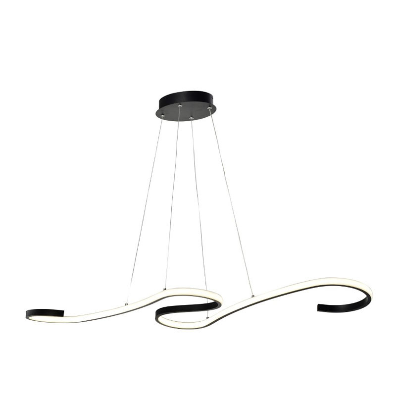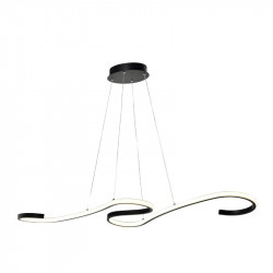 Corpo in alluminio in nero, sospeso da cavi d'acciaio.
