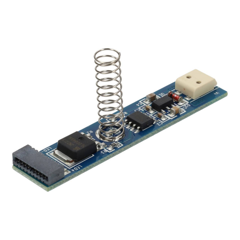 Touch switch + dimmer che permette di accendere e spegnere le strisce LED da 12 e 24 volt alloggiate in profili in alluminio e regolarne anche l'intensità luminosa dal 100% allo spegnimento.