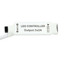 Mini controller con telecomando (infrarossi), uso interno (IP25). Controlla fino a 5 metri di striscia LED RGB 12V.