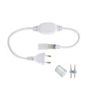 Kit de ligação para tiras flexíveis de néon redondas de 220V. Suporta até 50m de fita. Permite a ligação direta da fita de néon LED à rede eléctrica, sem necessidade de transformador ou de qualquer dispositivo adicional.