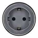 Tomada tipo F (Schuko) para instalação em calha linear, com acabamento em cinzento.