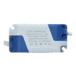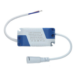 É um driver de transformador de corrente e tensão ajustável para downlight LED, a sua caixa de plástico protege contra danos causados pela água e poeira.