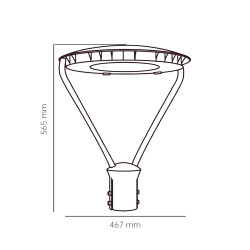 Equivalente em luminosidade a uma lâmpada de rua de vapor de sódio/mercúrio de 160W, o que significa uma poupança de 50%.