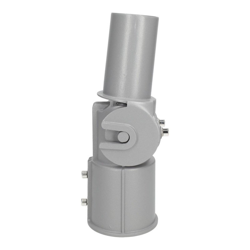 Suporte articulado para candeeiros de rua LED. Com este suporte, pode instalar qualquer candeeiro LED ou convencional com um diâmetro de 60 mm em colunas de até 80 mm.