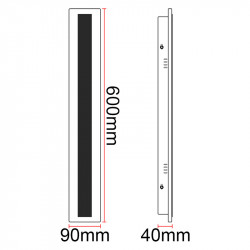 Luz de parede de alumínio LED com acabamento em preto, 60cm de comprimento e 18W de potência.