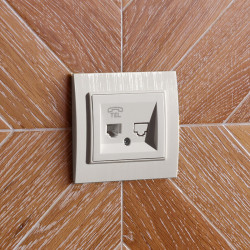 Base de uma peça com tomada de Internet (RJ45), disponível em branco ou prata.