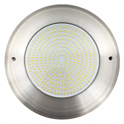Candeeiro de piscina de 18 W com luz quente, design extra-plano para instalação encastrada. Fabricada em aço inoxidável 316.